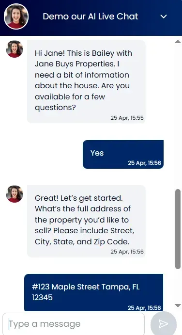 Fill out the form below and we'll role play that you're a seller who is interacting with your AI Real Estate assistant. Name your assistant to personalize your experience.